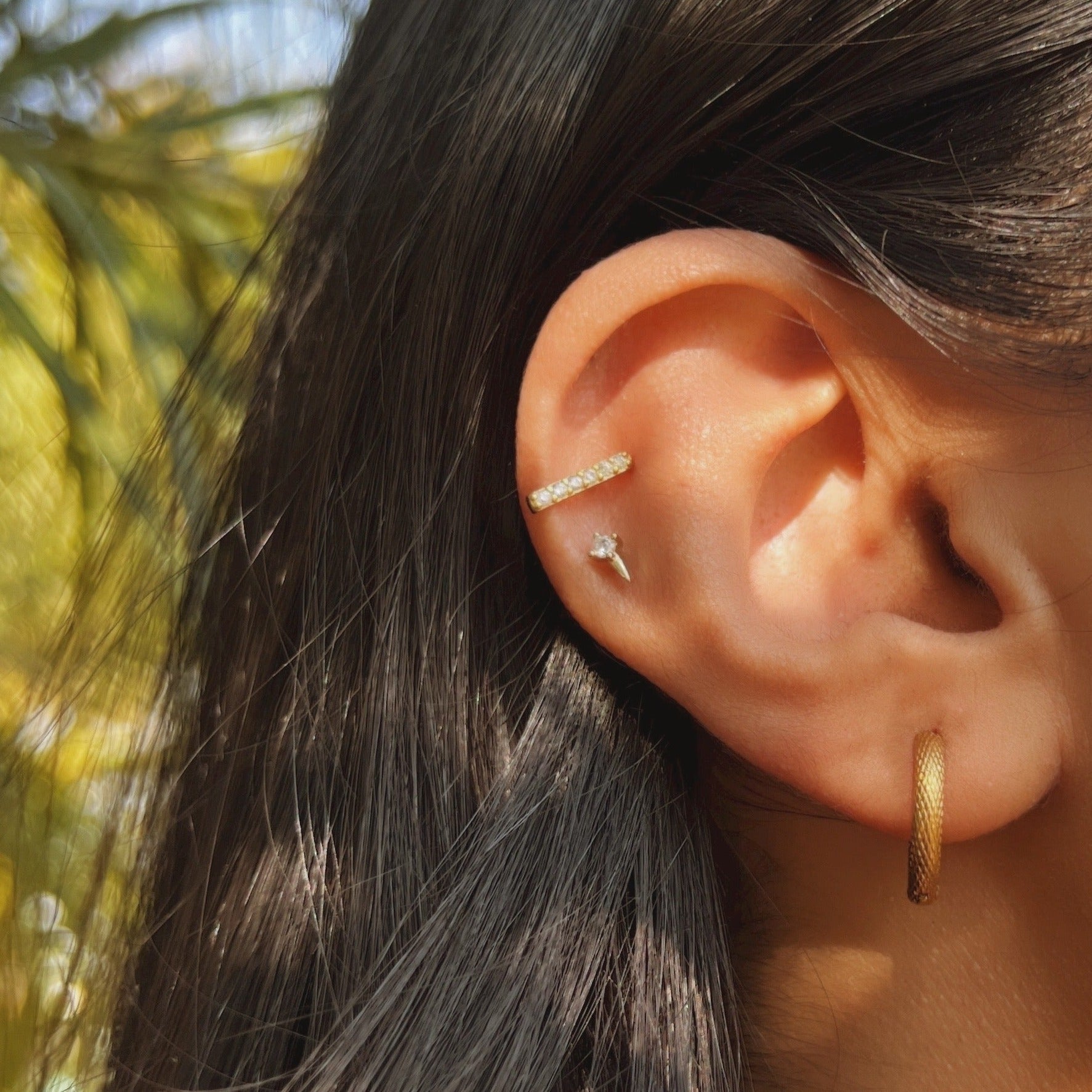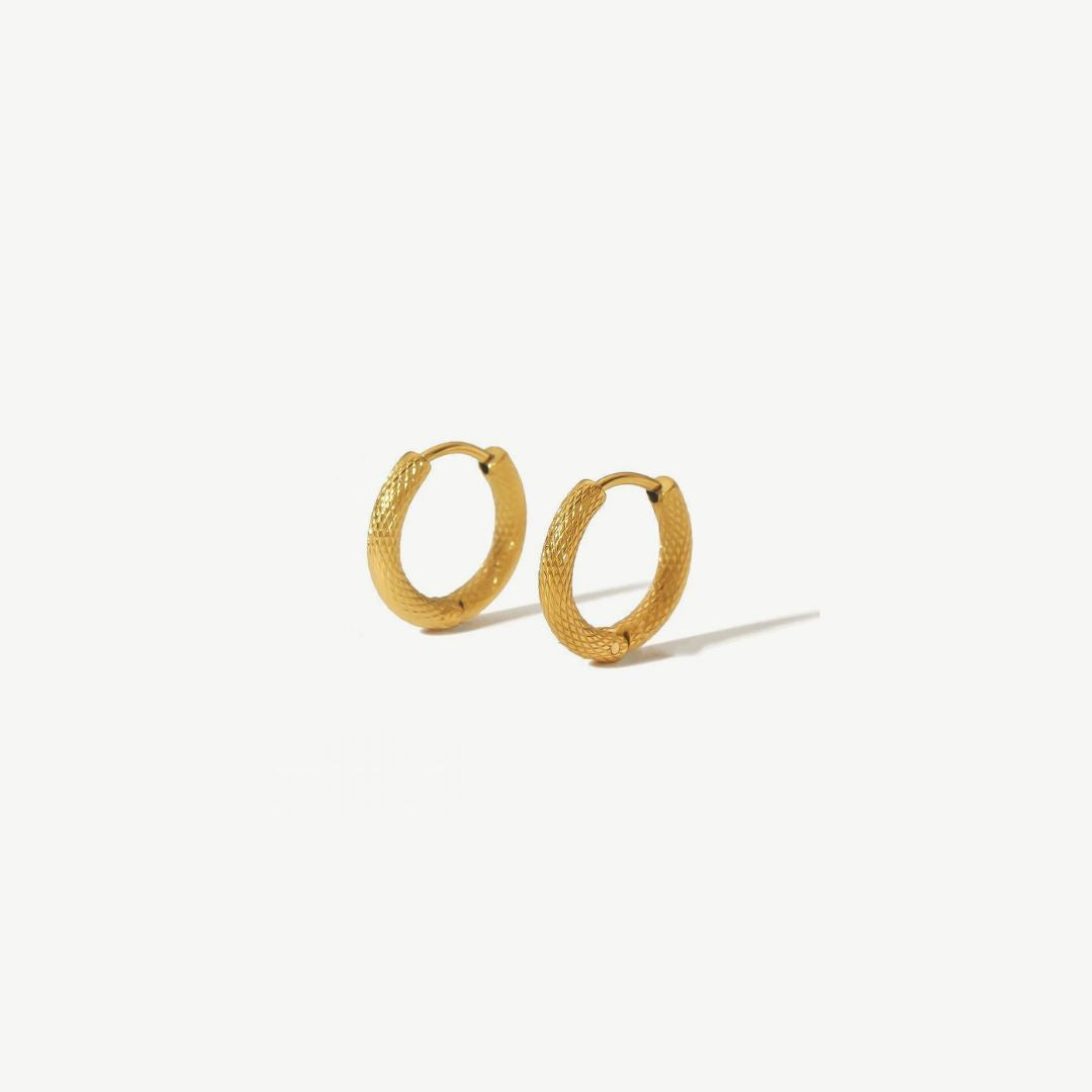 Discover the Abruzo Huggies – your daily essential redefined with a touch of luxury in 18 karat gold plating. Named after the picturesque city of Abruzzo, these huggies seamlessly blend modern style and minimalism, elevating your everyday look with sophistication. Crafted for versatility, these water-resistant hoops are more than an accessory; they're a statement, completing your collection with the missing piece inspired by Abruzzo's timeless allure.