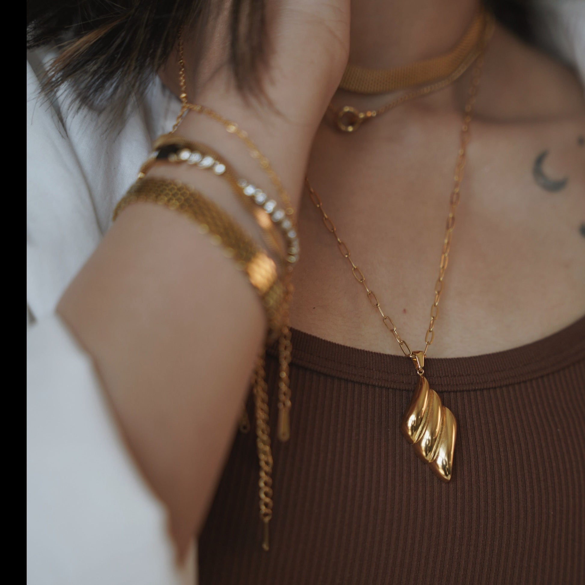 Introducing the Atrani Necklace—a paragon of contemporary sophistication and enduring grace. Crafted for the avant-garde woman, this necklace sets itself apart as an ideal adornment for everyday elegance. The Atrani necklace is a testament to refined style, a standout accessory that embodies the spirit of modern design. Made from premium stainless steel with a lustrous 18k gold plating, the Atrani necklace is designed to retain its radiance over time, allowing you to cherish your piece for daily wear across all occasions.