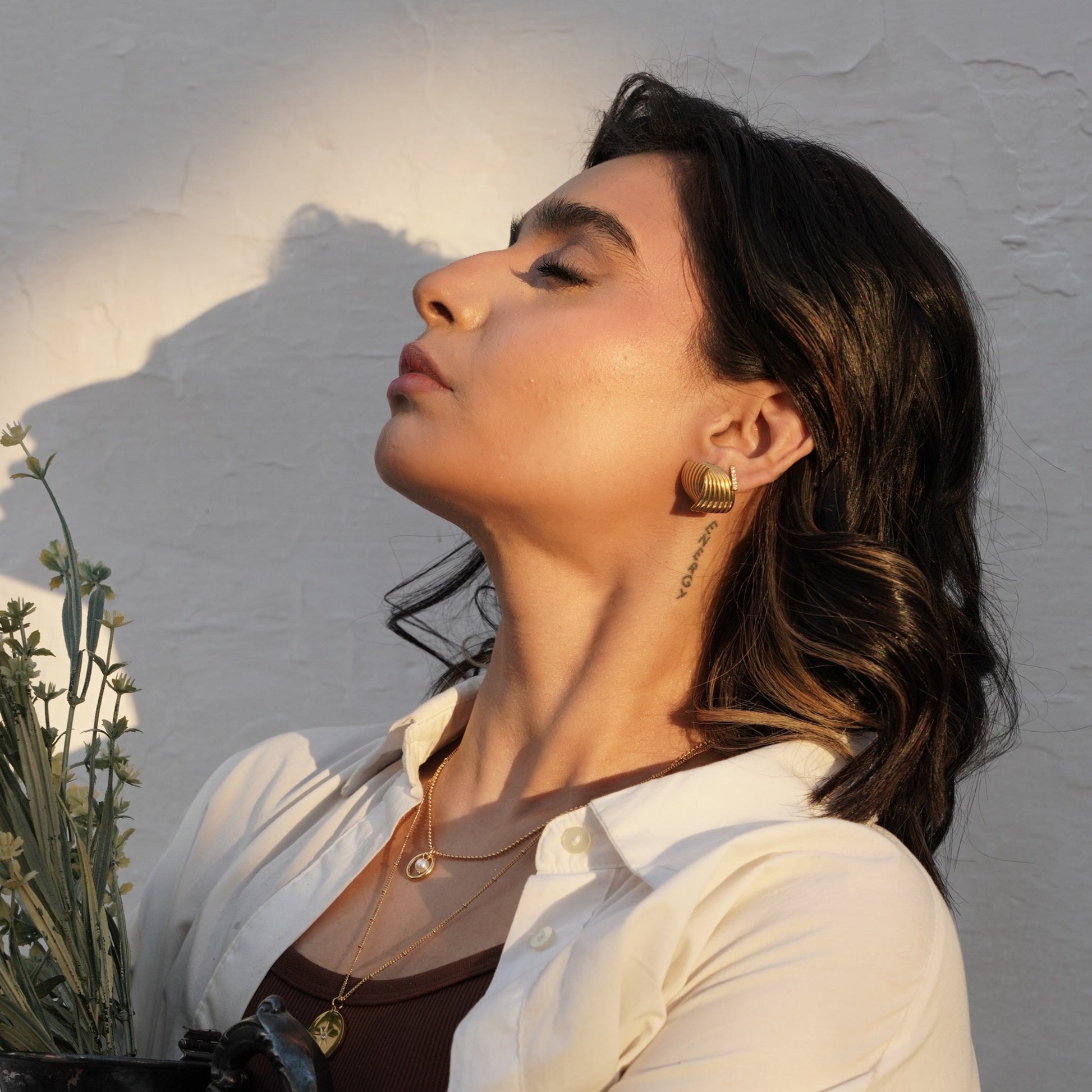 We use cultured pearls from oysters and freshwater mussels that we carefully select for our pieces. Pearls are sensitive so don't forget to treat them with love. Avoid direct contact with chemicals found in perfume or other cosmetics. To help do so, make sure they are the last thing you put on before going out and the first thing you take off when you come home.