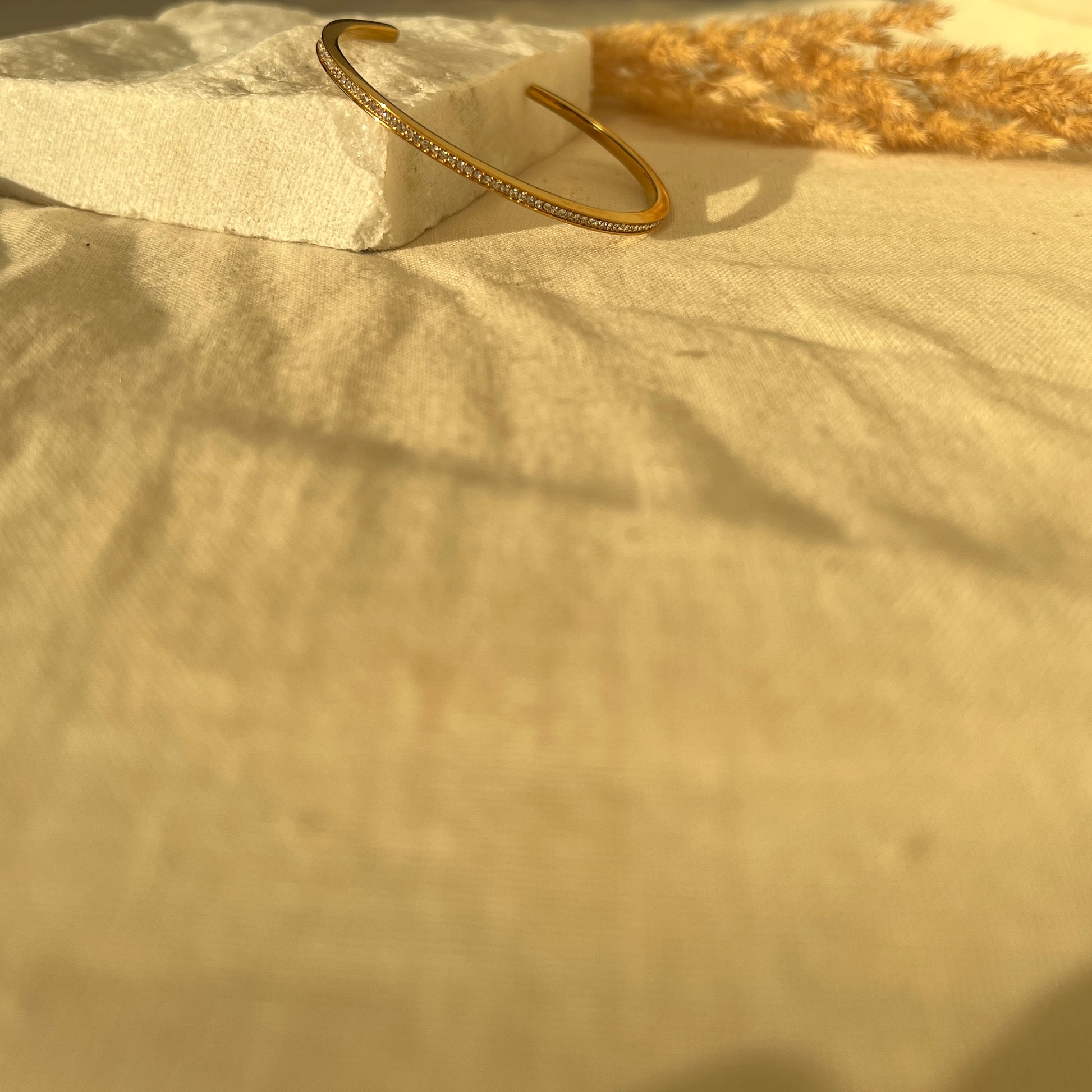 Combining old-world elegance with contemporary cool, the Cairo Bangle makes for the perfect addition to adding not only a glint of gold to your look but providing the perfect amount of classic charm. When the occasion calls for a grand entrance, Cairo is here for you to make a stunning style statement.. Enhance the look and pair your Cairo Bangle with our Havana Hoops for a truly eye-catching duo.