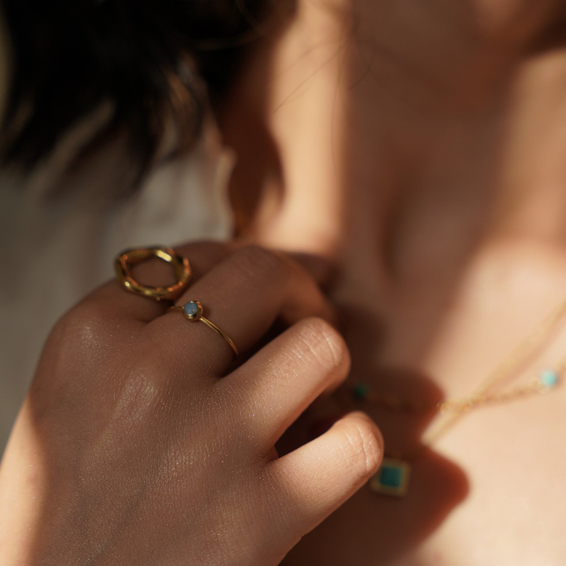 Channelling the infinite beauty of dreamy blue coastlines, this beautiful dainty ring will bring so much joy to your day - and let’s not forget about all the compliments you will get. Ceva ring is made from stainless steel and 18k gold plating combined with the dreamiest blue zircon, this ring will be your new go to.
