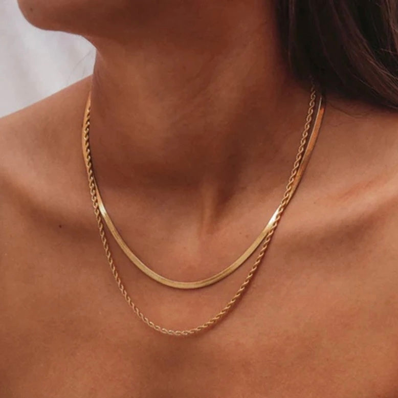 A classic layering set you'll never want to take off. Simply throw on the Positano set with any outfit for a look you will turn to time & time again. If you’re looking to add some herringbone into your wardrobe, this necklace is a solid choice for a new staple. We have nothing more to add except our matching Santos bracelet.