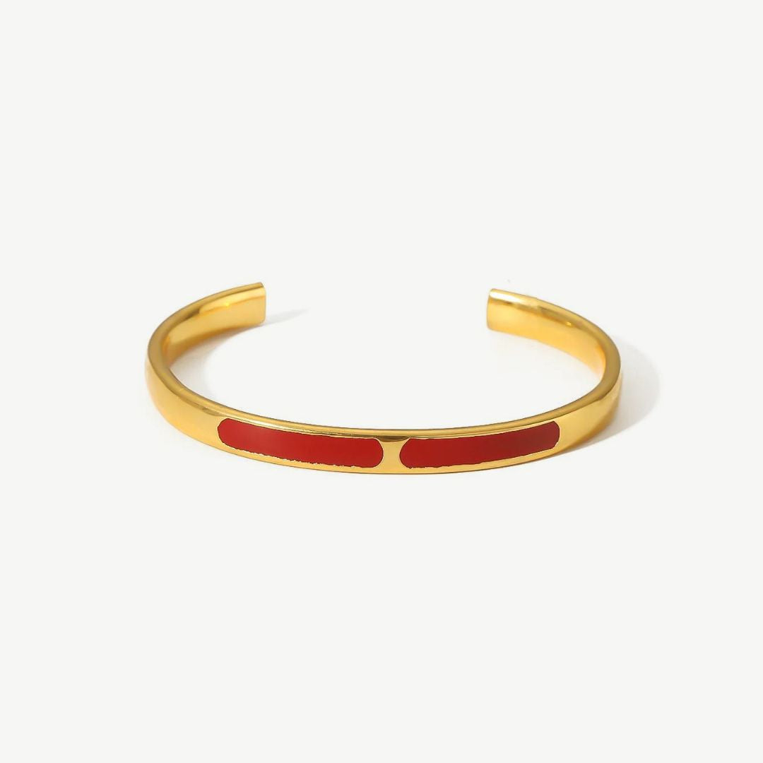 Infusing passion and energy into your style, our Rapallo bangle combines vibrant red stripes with a golden band, creating a unique and standout look. This bangle makes a bold statement on its own. Crafted from stainless steel with 18k gold plating, it promises long-lasting color so you can enjoy your jewelry day in and day out, no matter where you go.