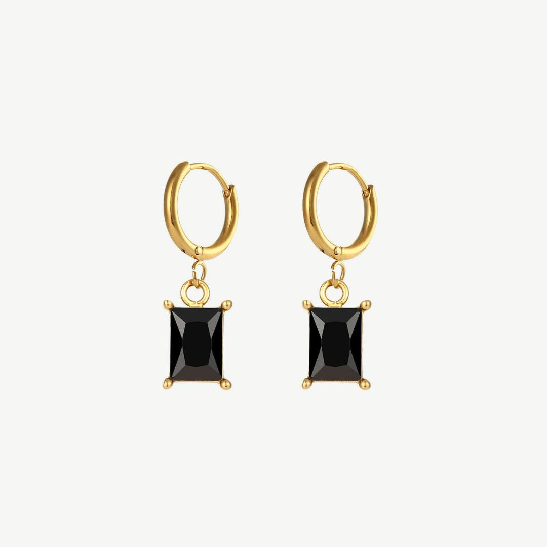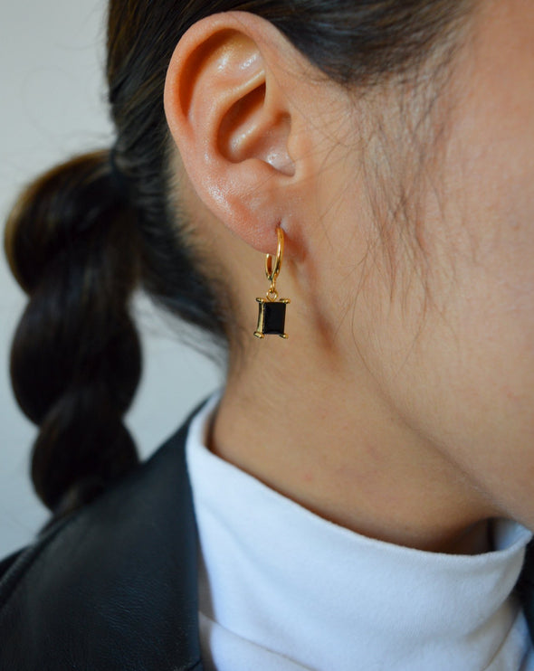 Black and gold. Name a more iconic duo. Our Samos huggies are here to give edge to your everyday style. Create contrast by teaming them with delicate huggies or studs or both. Sold as a pair.