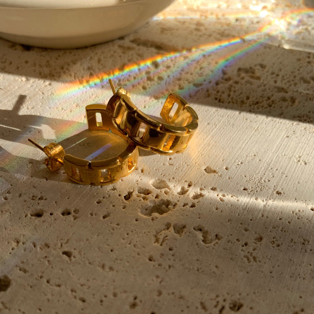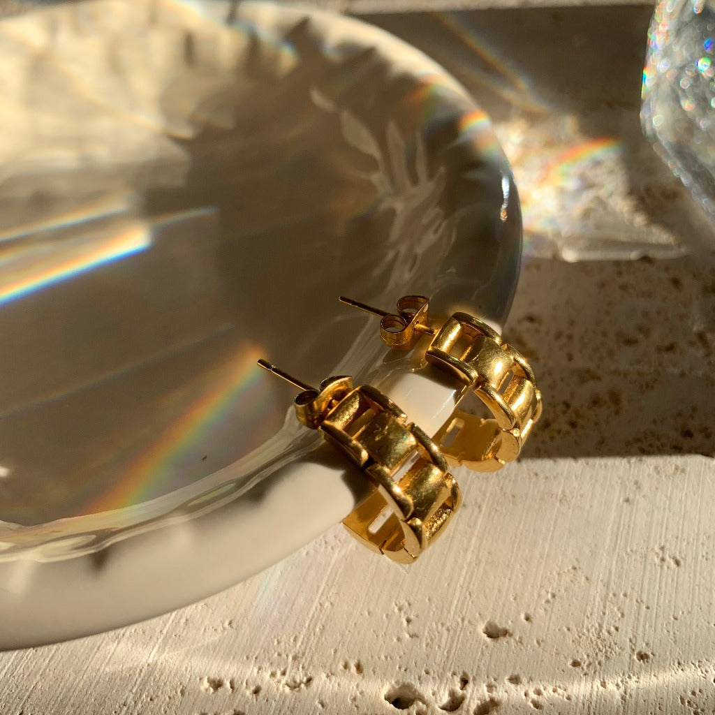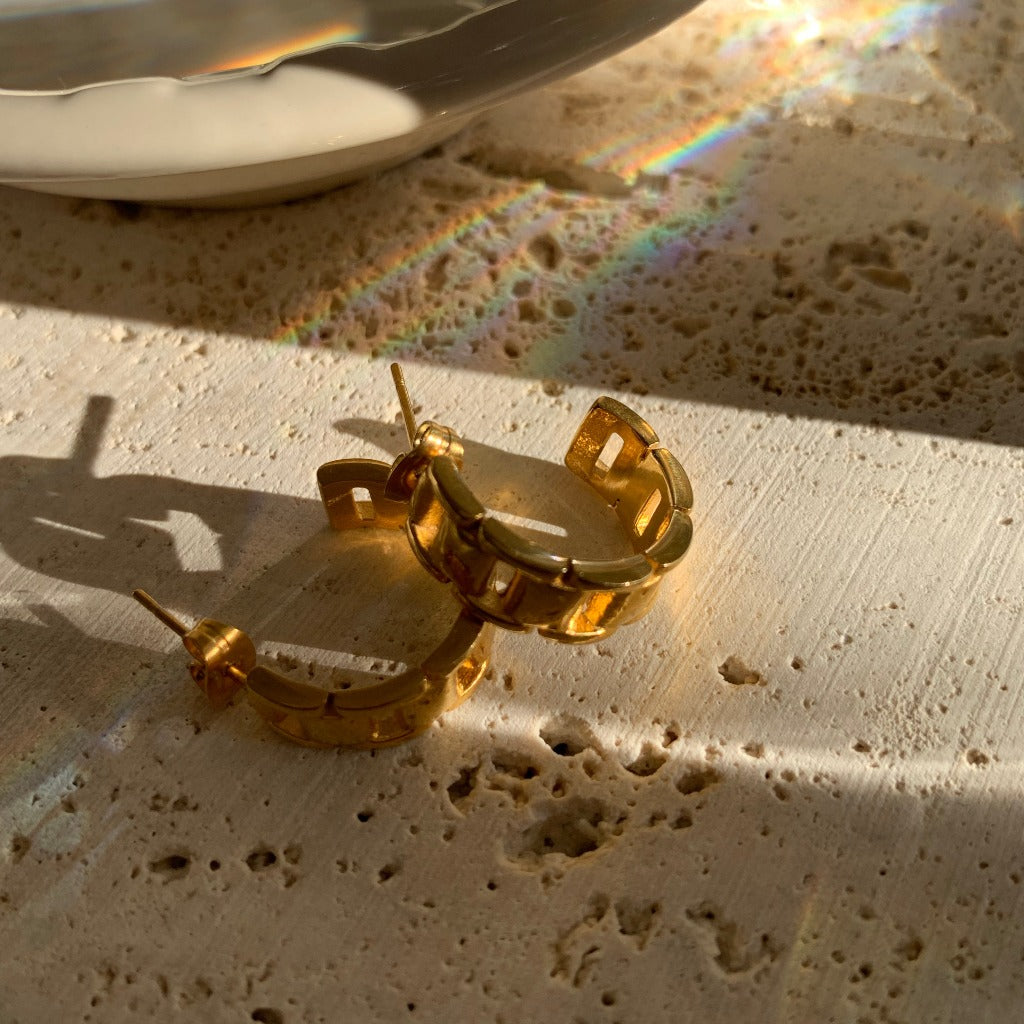 A real head turner. Serra hoops add texture and style to your year-round looks, taking you from ordinary to extraordinary. Wear them solo or add mini hoops for an updated ear stack. Our Serra hoops are made from stainless steel and 18k gold plating which only means the colour will last for a really long time so you can wear your jewellery every day, everywhere. Sold as a pair.