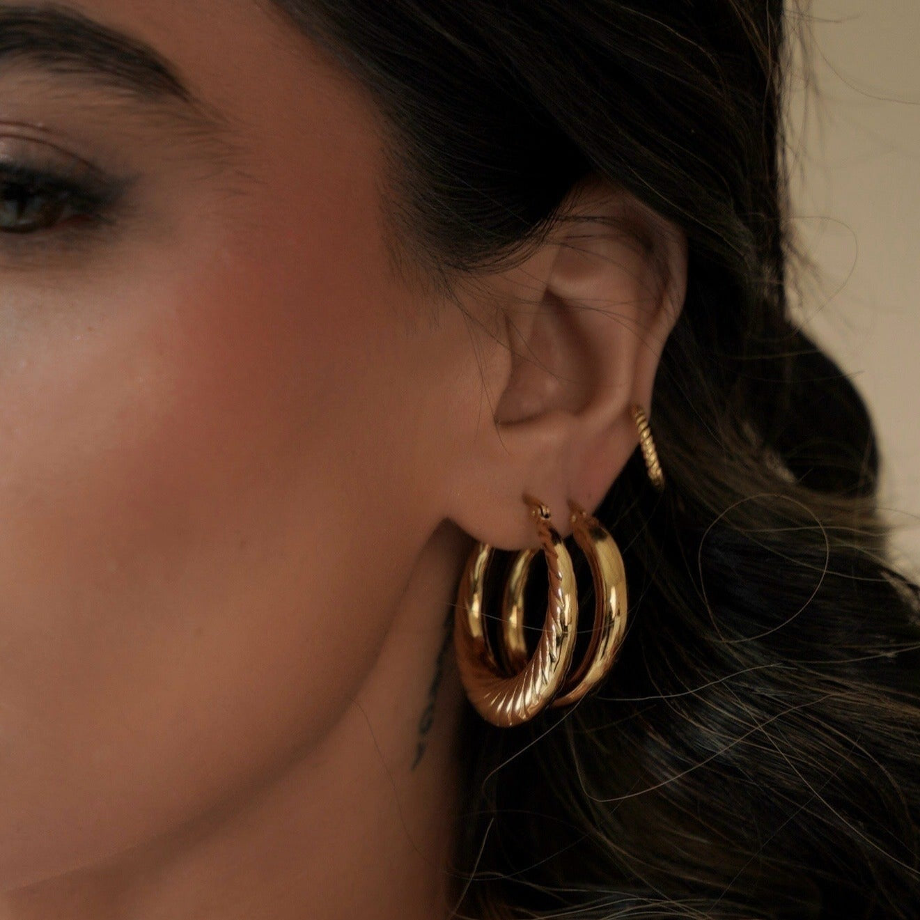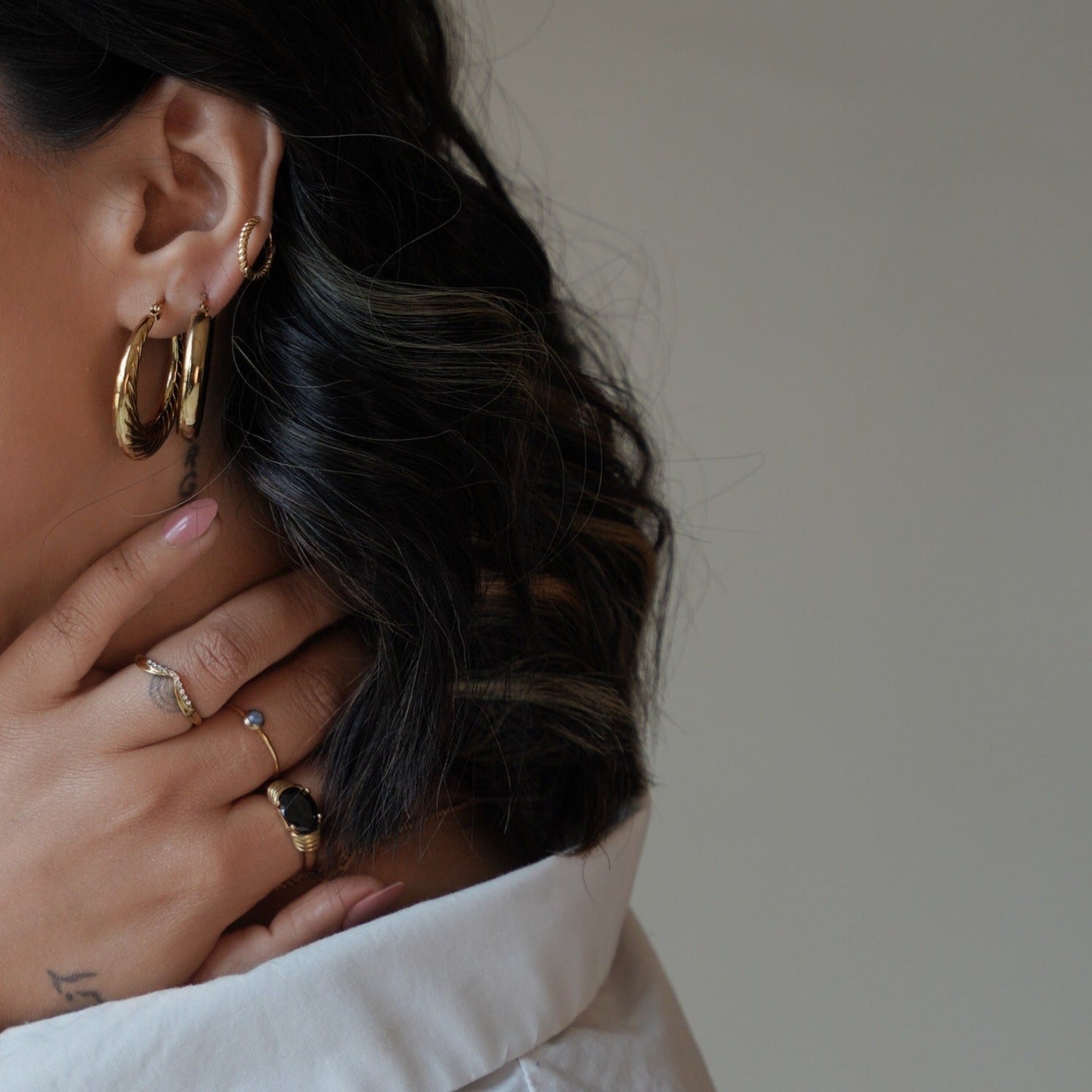 Introducing Trieste huggies, they are dainty and delicate and perfect for everyday wear. Simple yet striking - you’ll find yourself reaching for these huggies every day. Wear these all the time and (honestly) never take them out. Sold as a pair.