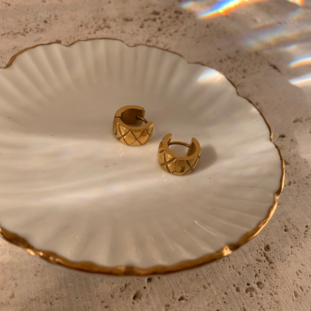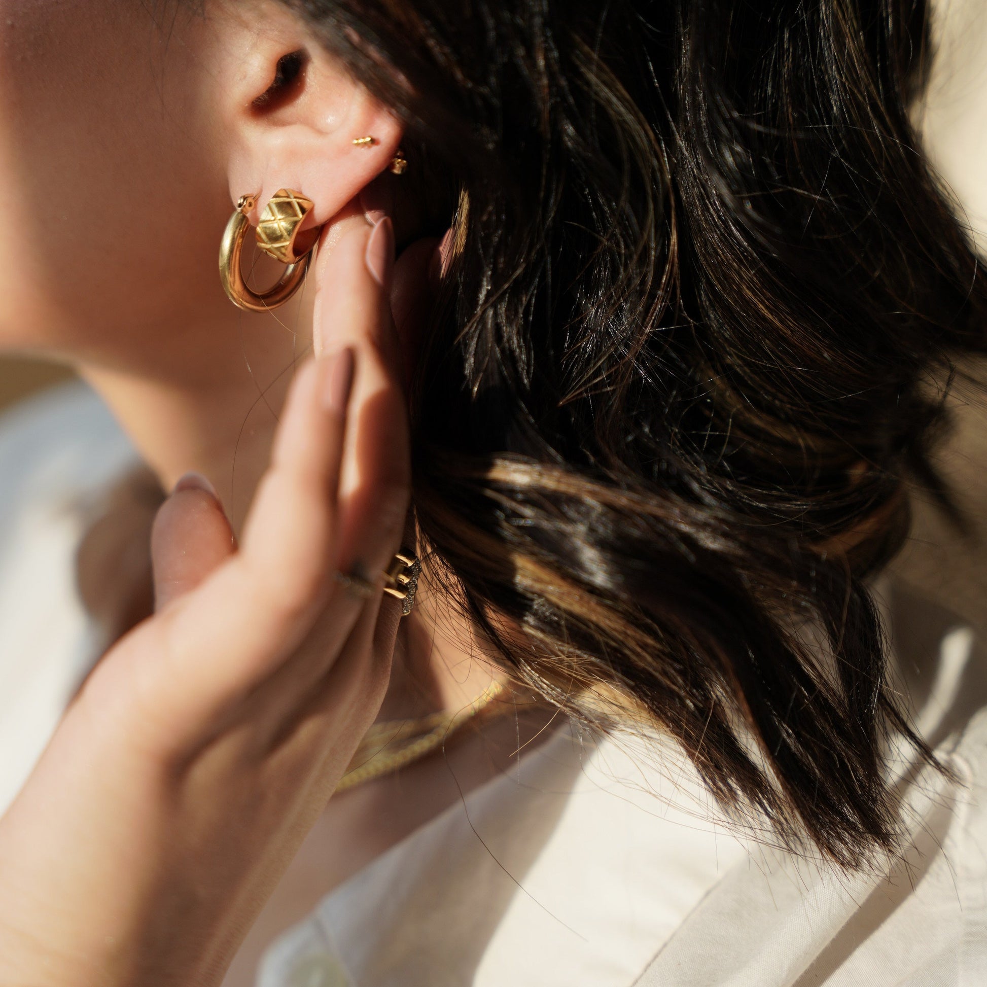 Your new everyday icon because every wardrobe needs its foundational basics. Wear these all the time and (honestly) never take them out. Truly versatile, style them with your favourite standout hoops or let them shine on their own. Our Tripoli huggies are made from stainless steel and 18k gold plating which only means the colour will last for a really long time so you can wear your jewellery every day, everywhere. Sold as a pair.